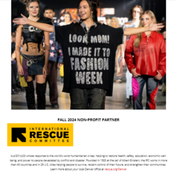 This inclusive spirit extends to DFW's support of non-profits, demonstrating that showcasing fashion can - at it's best - have a profound and positive impact on the community. And this year, the International Rescue Committee (IRC) in Denver has been selected as the 2024 non-profit partner for the upcoming Denver Fashion Week (November 9 to 17).
