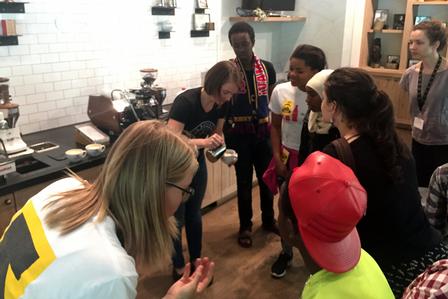 The IRC's Connect2Work program - a career exploration and prep program for refugee teens - took a field trip to La Marzocco Cafe & Showroom and KEXP.