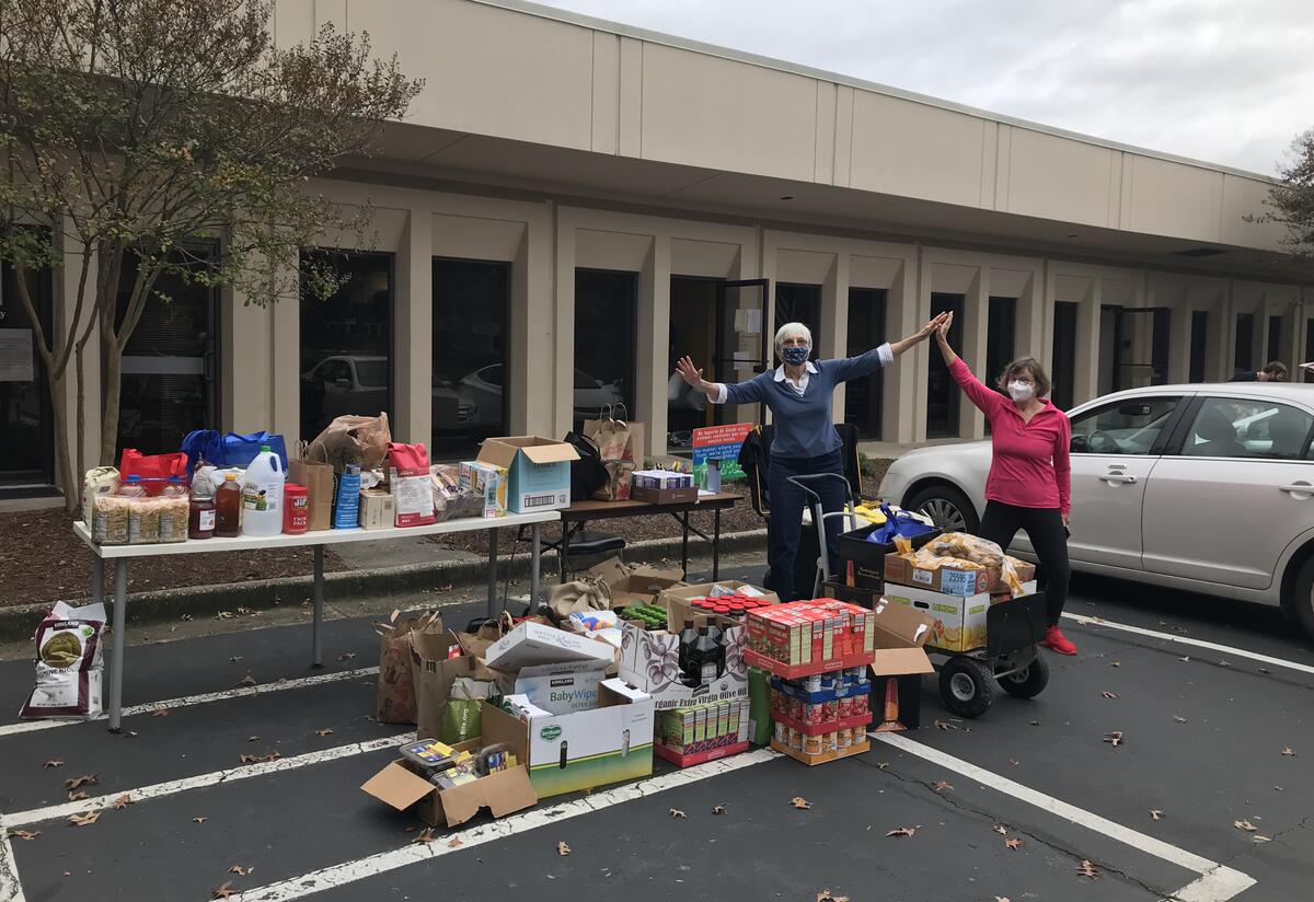 A true interfaith effort, IRC supporters Myrtle Lewin and Patsy Little mobilized their fellow congregants at Ahavath Achim Synagogue to collect two entire carloads of donated food items for the drive as part of their Refugee Initiative (AARI). “These food items come with our warmest wishes to all those who may receive our gifts,” Myrtle and Patsy shared. “They were gathered with love. We want our newest neighbors to know we care about them and welcome them. We hope that every family has an ample supply of good, wholesome food for their Thanksgiving celebrations, and that everyone remains healthy.”