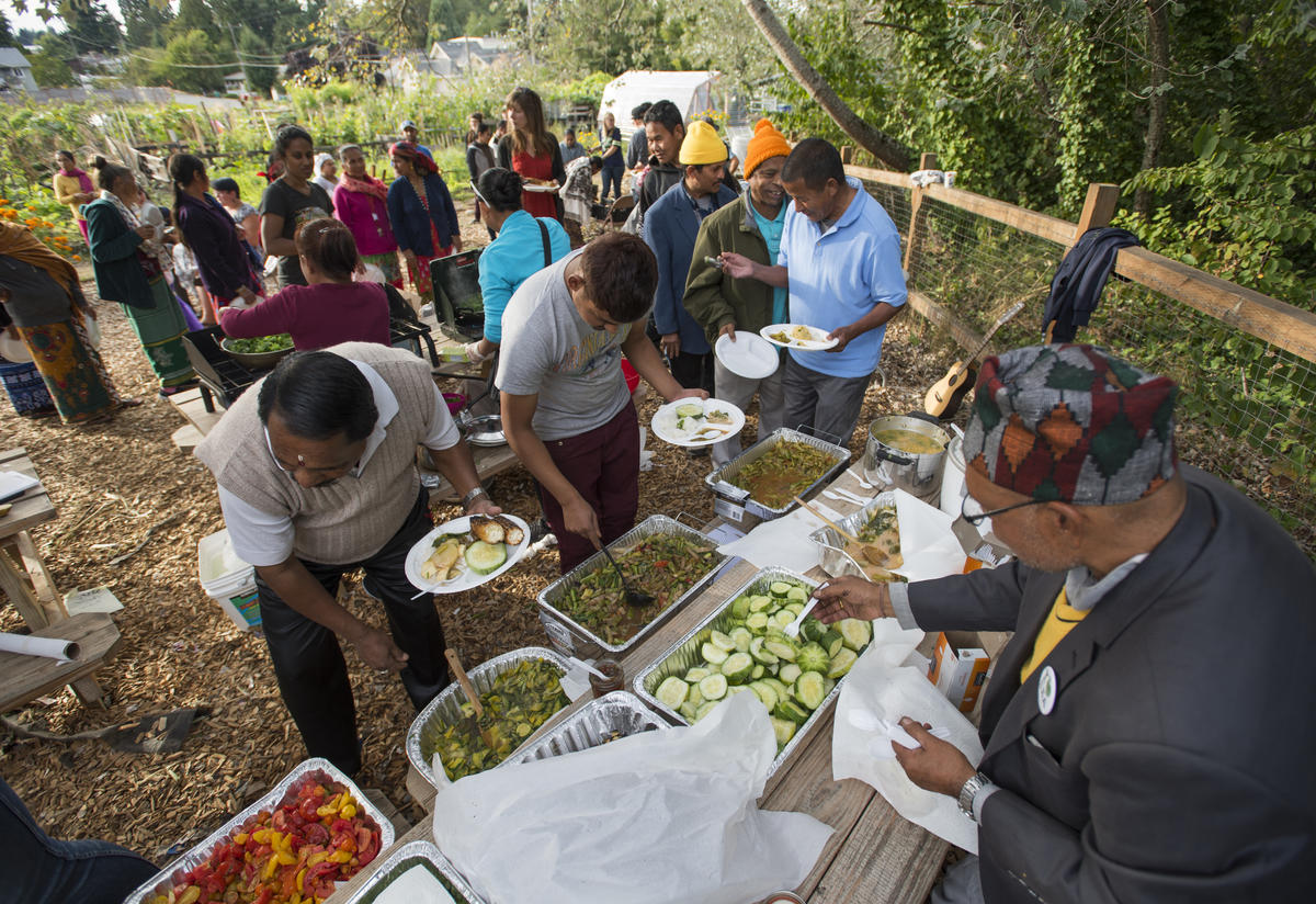 Refugee gardeners in Tukwila hosted a harvest celebration at Namaste Community Garden to usher in the autumn season. Grilled corn and a variety of dishes made with organic produce freshly harvested from the garden were shared with the broader community. A special thank you to Tukwila Mayor Allan Ekberg for joining the celebration!
