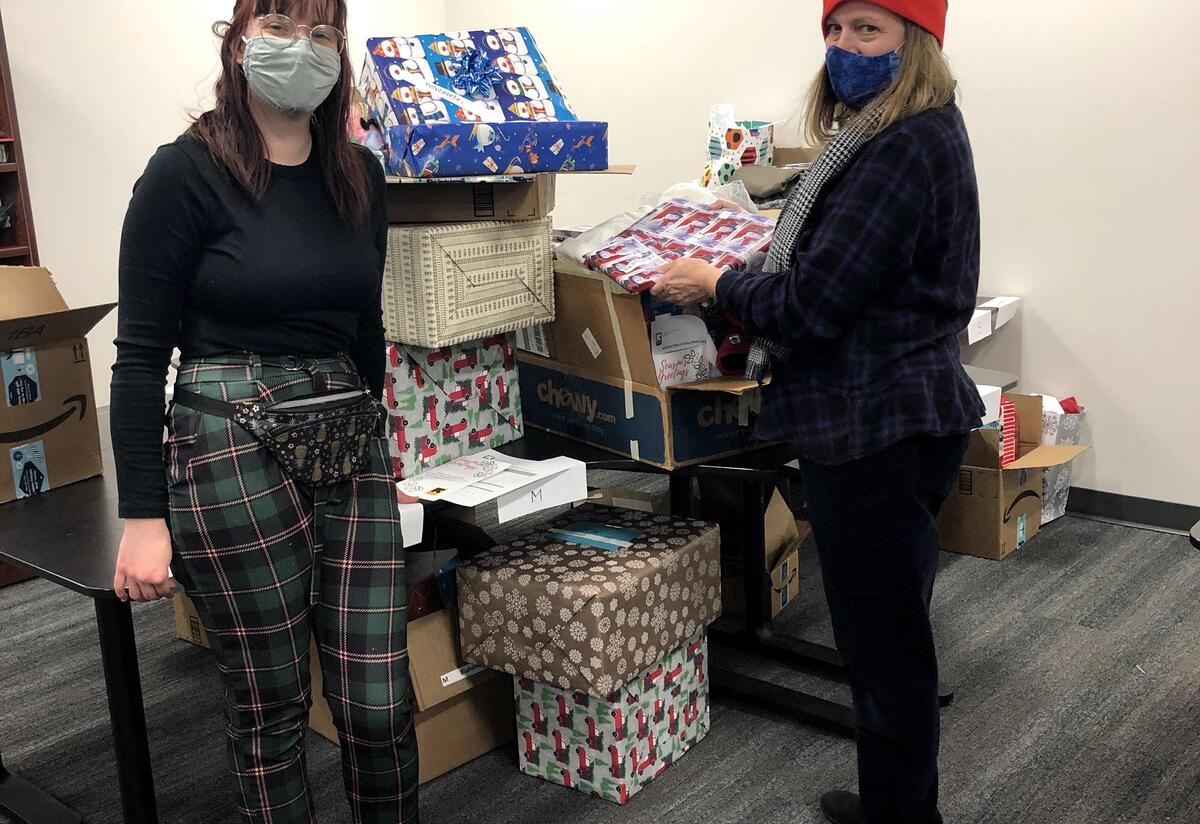 Volunteer & Donations Coordinator Jennifer Perry-Daly(R) and Intern Kjirsten Thomas (L) prepare for IRC's 2020 Season of Giving
