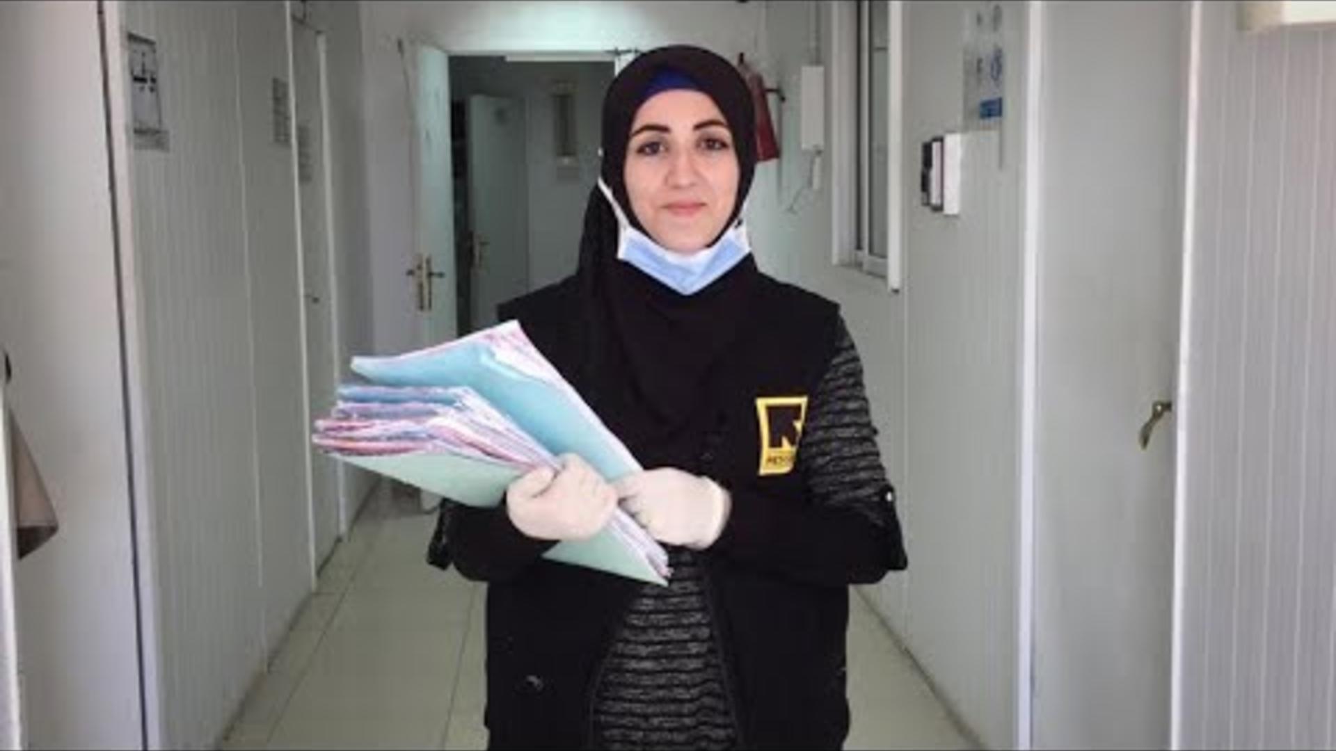 Today, Doha volunteers as a receptionist in the IRC’s reproductive health clinic in Azraq camp. Even through a national lockdown in Jordan, Doha and her colleagues have continued to provide essential medical care—safely.