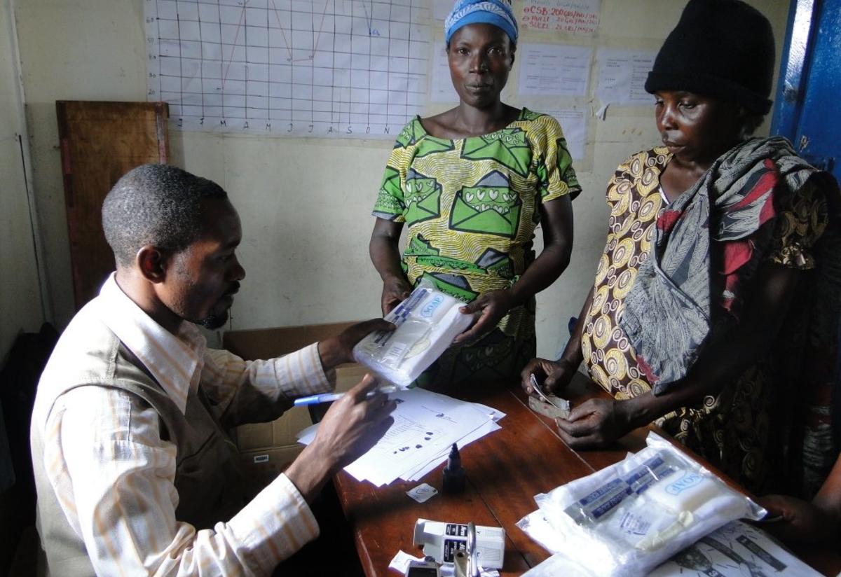 The IRC gives women staying in Nzulu, a camp for people displaced by violence in the Democratic Republic of Congo, reproductive health kits that include supplies to help pregnant women deliver their babies safely when they are far from a hospital.
