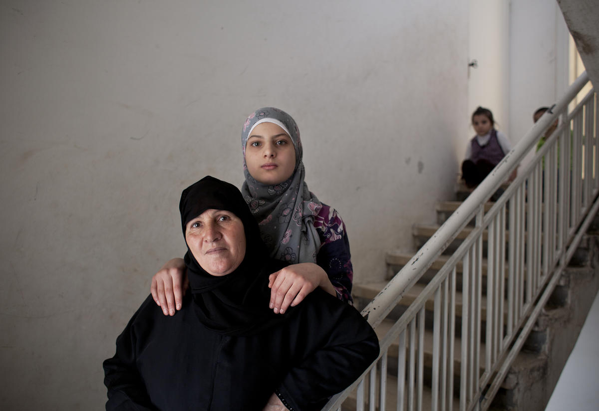 A woman and her daughter from Syria in their shared house in Jordan.