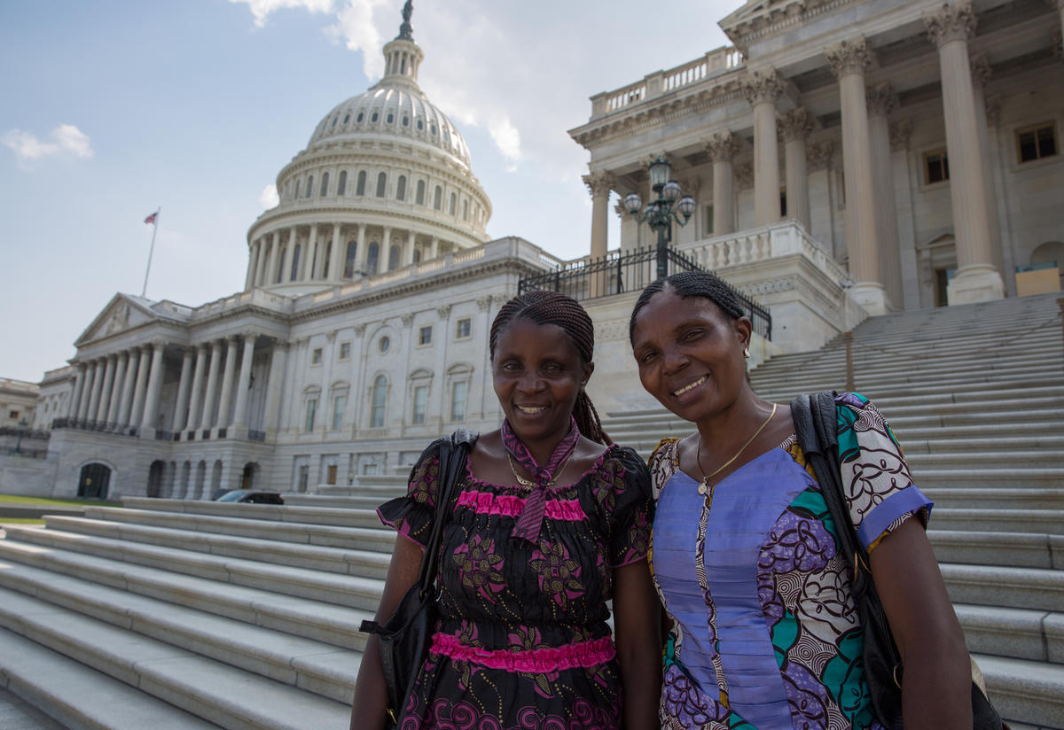 Séraphine Nsekanabo Musanga and Marie Jeannette, who work with the IRC assisting survivors of violence, stand outside the United States Capitol building.