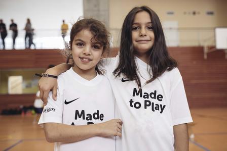 New York, NY, October 4, 2018 — 3, 2, 1... and go! Children scream gleefully as they race across the gym of the Löwenzahn Primary School in Berlin-Neukölln, Germany. Around 40 students ages six to ten are letting off some energy after a long day in the classroom. Running and playing – the normal madness in the weekly training sessions of "Berlin Kickt" a Made to Play program by Nike as well as buntkicktgut and the International Rescue Committee.
