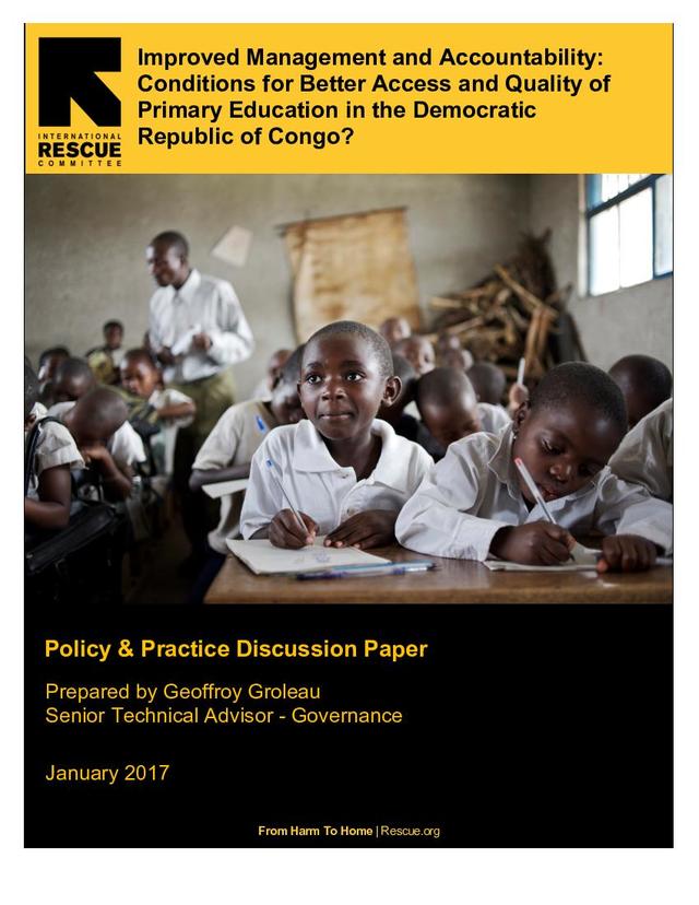 There are well-documented access and quality issues in the schools of the Democratic Republic of Congo (DRC) that negatively affect the learning of Congolese Children. Indeed, one out of three children will drop out of primary school before graduation, while only about half of those graduating are considered literate. This Policy & Practice Discussion Paper explains how these issues are intimately linked to governance challenges facing the education sector. Understanding how school systems are managed, and how accountable school directors and these systems are to parents is crucial when intervening to strengthen the delivery education services in sub-Saharan Africa. While school construction and teacher training are important interventions, they are not sufficient on their own to sustainably improve learning outcomes. This discussion paper aims to stimulate a broad debate of these questions among education stakeholders in the DRC. Concrete actions by the Congolese government on this front will be indispensable to improve learning for all Congolese children in coming years.