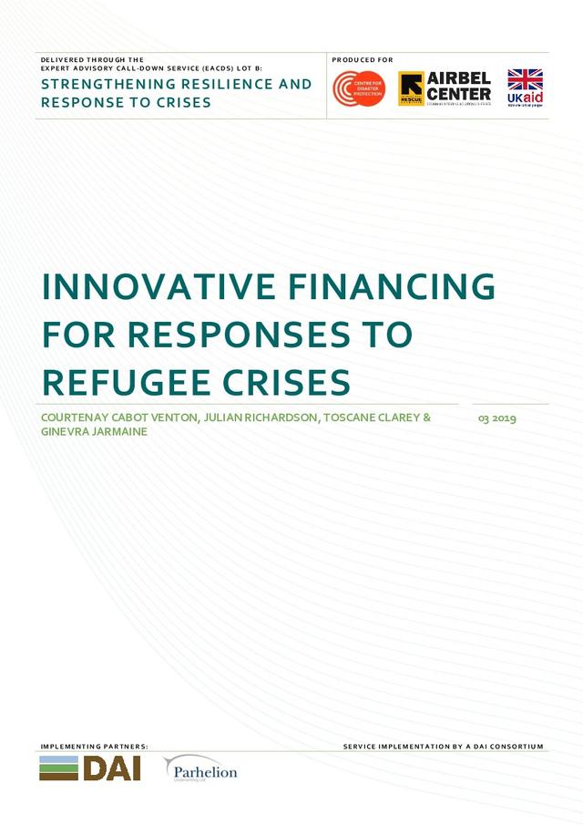 The research conducted identified five core challenges in financing responses to refugee crises, namely the speed of the arrival of financing, the sustained duration of financing, the use (shape) of financing, the incentivisation of host countries through financing, and the increasing global frequency and severity of crises placing further demand on current humanitarian financing. In this strained financing context, the role of innovative finance has become increasingly important. Innovative financing for responses to refugee crises could include the development of new financial mechanisms, or the adaptation and application of non-traditional mechanisms (particularly those from capital and insurance markets) to meet humanitarian and development financing needs.