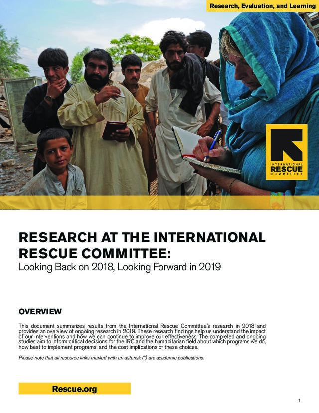 "The IRC’s Research: Looking Back on 2018, Looking Forward in 2019" includes brief summaries of the International Rescue Committee’s research findings from the last year, along with short descriptions of ongoing research this coming year, and includes links to publications to dive more in depth.