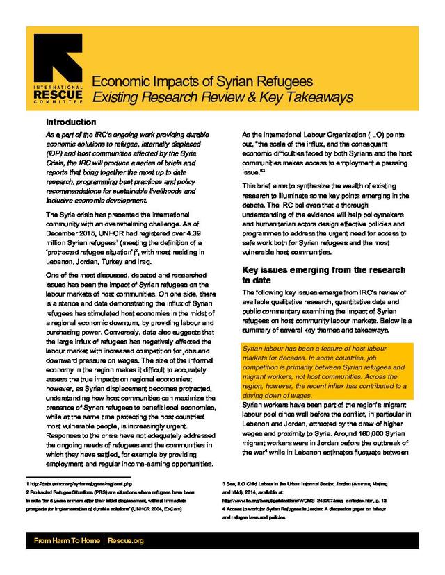 The Syrian refugee influx has undoubtedly exacerbated pre-existing economic and labor market challenges facing host communities including high unemployment and large informal markets, while the huge population increase has caused an enormous strain on resources, services and infrastructure. However, there is also a growing body of research that evidences the vital role Syrian refugees’ play in stimulating host economies and even buffering host economies from some of the wider regional economic impacts of the Syrian war. Indirectly, the increase in humanitarian aid and spending alongside Syrian investment has contributed to a positive effect of job creation and consumer spending on food, rents and services amongst local economies. Yet, host governments responses to date have increasingly restricted access to formal work for Syrian refugees, undoubtedly paralyzing the increased economic contribution Syrian refugees could make if permitted to work. Moreover, restrictions on formal work are creating immense suffering, including labor exploitation, child labor and poverty for refugees and a race to the bottom in wages in the informal sector, which affects the most vulnerable host communities.