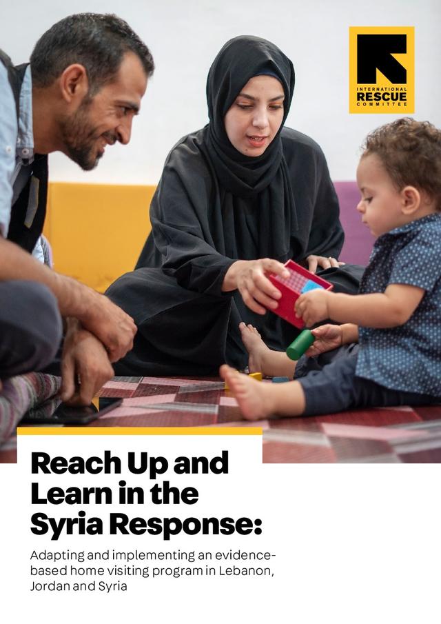 Reach Up and Learn is an evidence-based home visiting program which originated in Jamaica and has since been adapted to support caregivers of children 0-3 years old in 18 countries. As part of prioritizing early childhood development in responding to the Syrian refugee crisis, the International Rescue Committee (IRC) adapted this model, and trained refugee and host community workers to conduct regular visits to caregivers of young children, in which they demonstrate simple, homemade toys and play-based activities using contextualized books, puzzles, handmade toys, dolls and local songs. The home visitors model nurturing care, provide supportive encouragement and lend a much needed listening ear to caregivers. The report documents the experience of adapting and implementing this play-based home visiting intervention in a crisis setting and shares stories of community workers and caregivers participating in the program in Jordan, Syria and Lebanon. We are now scaling this intervention to reach even more children and caregivers via the Ahlan Simsim program, a partnership between IRC and Sesame Workshop.