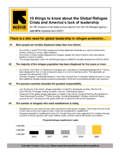 - In the absence of U.S. leadership, resettlement commitments are falling through. While 37 countries made commitments to resettle refugees in 2016, just two years later only 25 countries are resettling refugees.