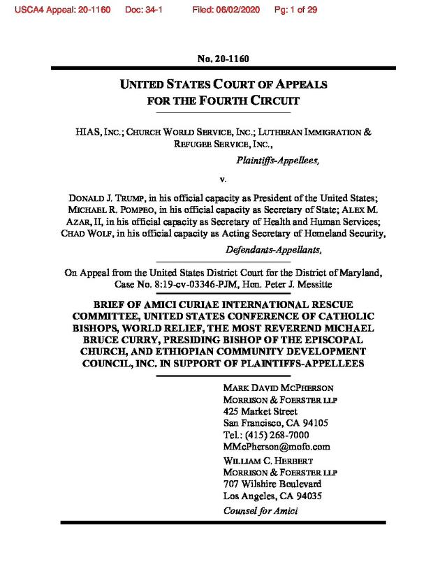 The International Rescue Committee filed an amicus brief in support of this litigation and the national injunction on June 2 with four additional refugee resettlement agencies: the US Conference of Catholic Bishops; World Relief; the Episcopal Migration Ministries; and the Ethiopian Community Development Council. As evidenced by the bipartisan 43 Governors and more 300 local officials who provided consent, American communities welcome refugees. This amicus reinforces our commitment to the US refugee resettlement system, the communities where we work, and the refugees who seek to rebuild their lives here in safety and freedom.