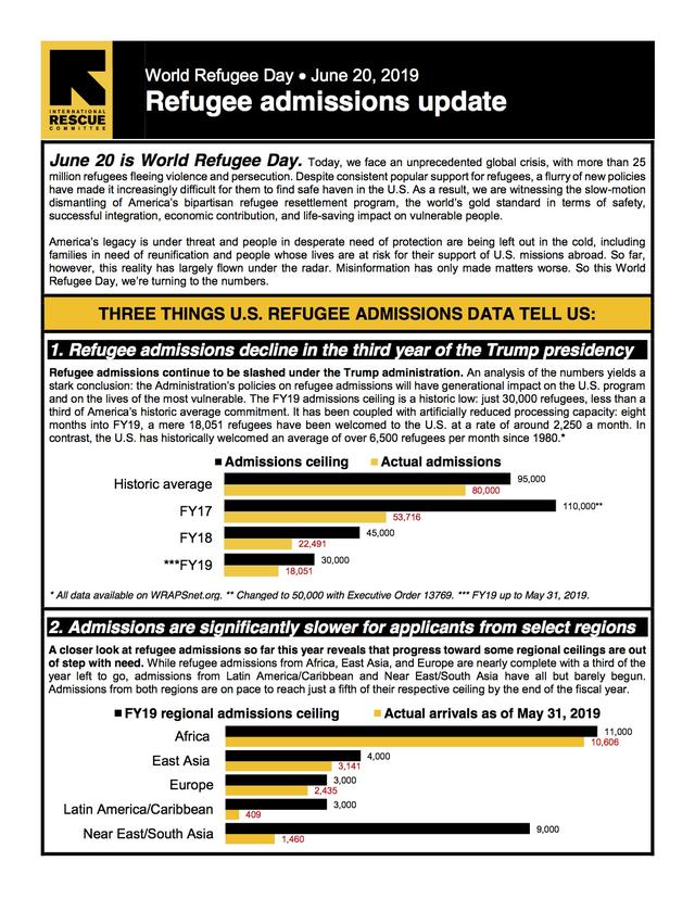 June 20 is World Refugee Day. Today, we face an unprecedented global crisis, with more than 25 million refugees fleeing violence and persecution. Despite consistent popular support for refugees, a flurry of new policies have made it increasingly difficult for them to find safe haven in the U.S. As a result, we are witnessing the slow-motion dismantling of America’s bipartisan refugee resettlement program, the world’s gold standard in terms of safety, successful integration, economic contribution, and life-saving impact on vulnerable people.