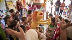 Syrian children make a new friend: a Sesame Street Muppet