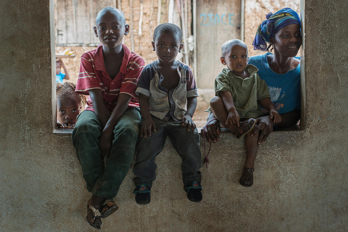 A mother and her children listen to a discussion about Ebola in Barkedu’s town hall. Information sharing is key in the effort to contain the virus. Photo: Peter Biro/IRC