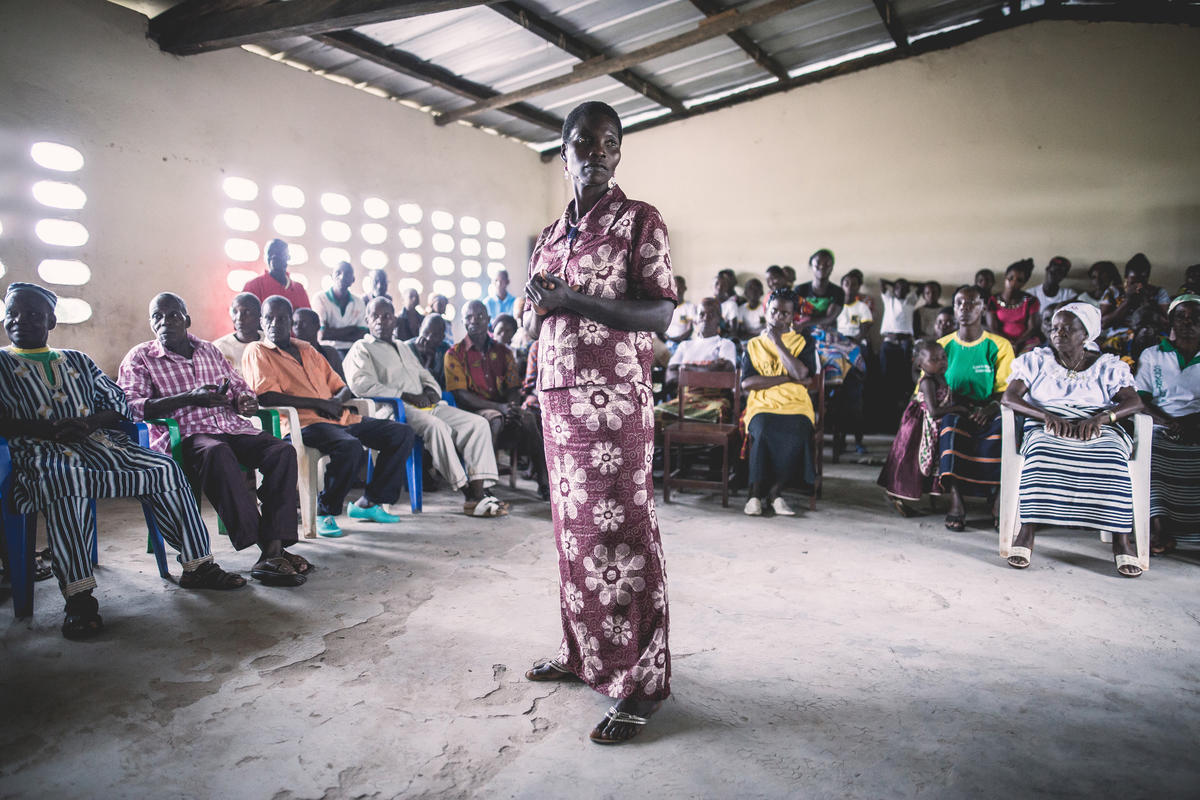 In Ivory Coast, an IRC supported group of 10 women and 5 men observes their village for violent behavior, such as rape and domestic violence, and presents their findings to the village leader to discuss and address the issue. The IRC works to change social norms so women and girls can live free from violence and fully take part in personal, social, civic and economic opportunities. Photo: Christian Bastiansen/IRC