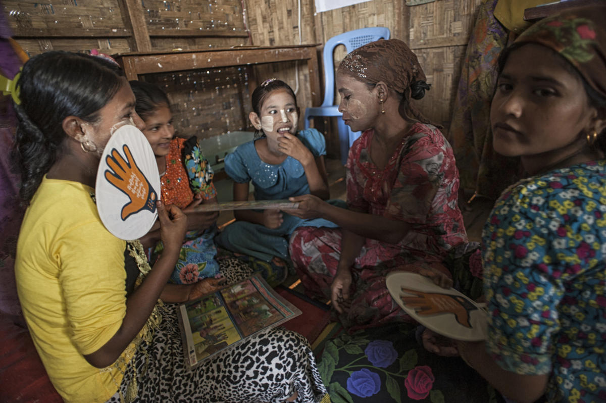 Nyo Nyo Aye, 23, lives with her parents and older sister in a Rakhine camp and has been working with the IRC as a women and girls’ wellness attendant for three years.