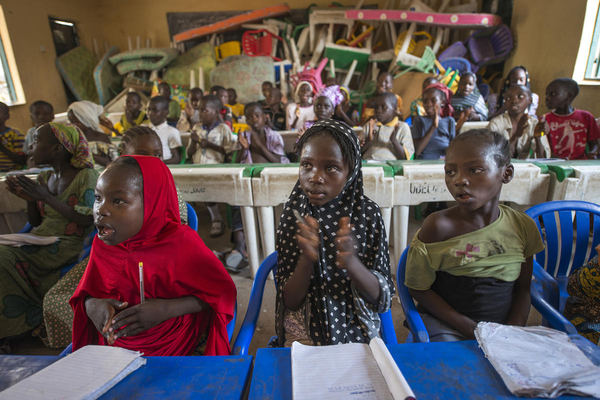 In eastern Nigeria, where militant attacks have displaced thousands of people from their homes, the IRC organizes play sessions in several “child-friendly spaces” where uprooted children can make new friends and start to recover from trauma. Photo: Peter Biro/IRC