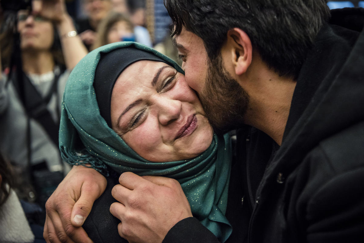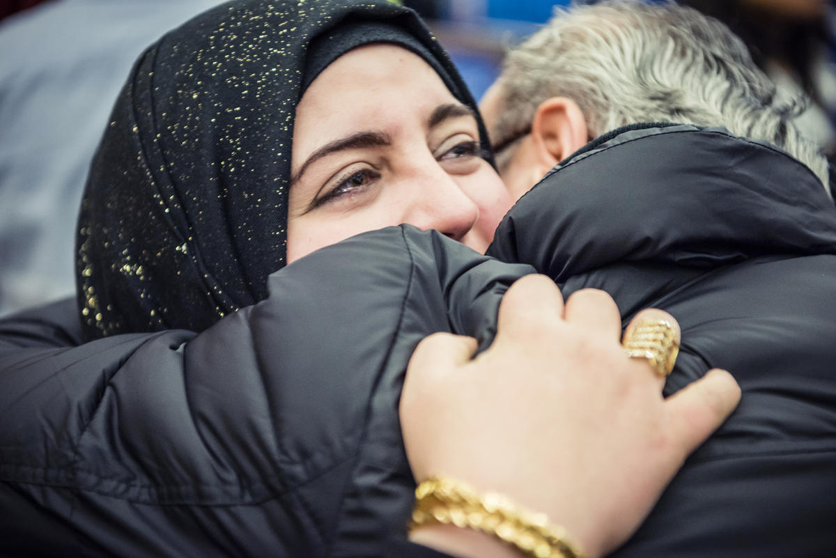 18-year-old Mohamed rushes to hug his older brother, Walid, who dreams of becoming an engineer.