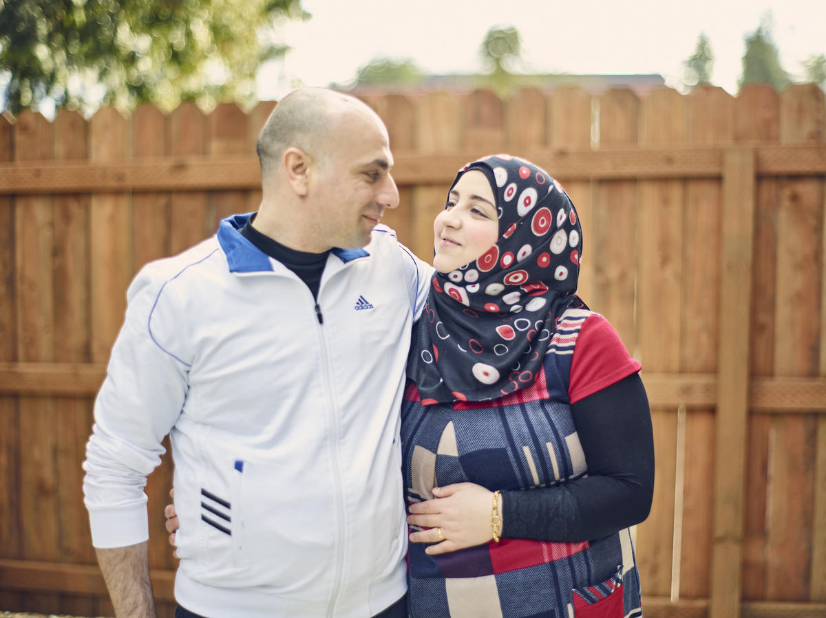 Jaidaa with her husband Abdulmalik. The couple is thrilled that they’ll be able to raise their baby daughter in a free and diverse country.