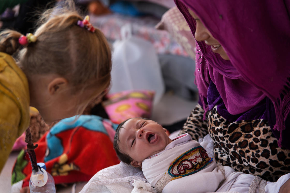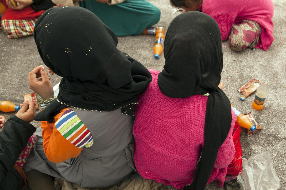 IRC social workers and community mobilizers go from tent to tent in Zelikan, listening to what women need. Their biggest requests? Underwear, warm clothes, blankets and diapers.
