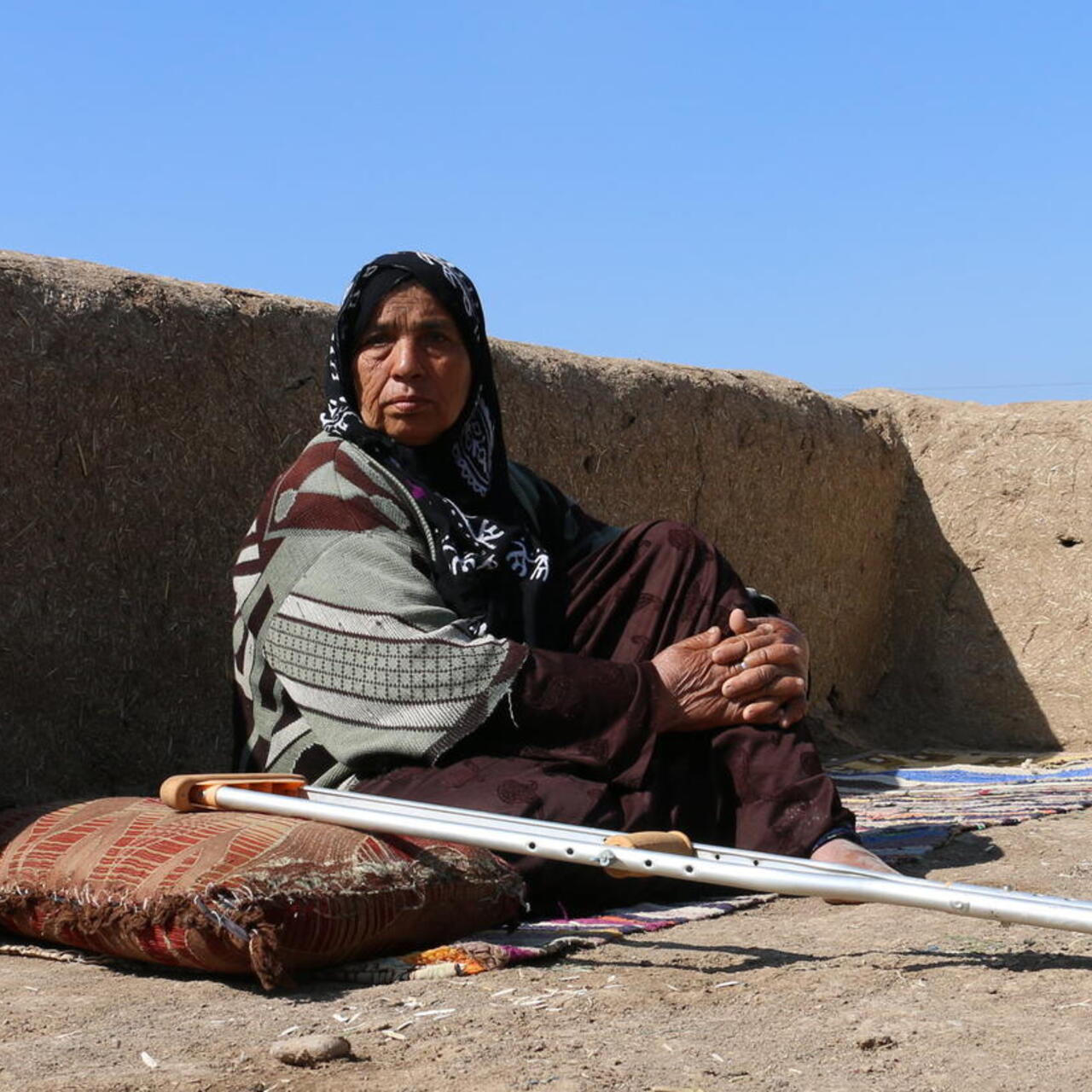 Miriam*, 65, spends her days sitting on a floor mat in her brother’s home, massaging her swollen arms and legs. She lives in a village set among sweeping green fields in northeast Syria. When war descended over two years ago and armed fighters closed in, her family fled. They returned late last year after local authorities secured the area, but at that point, Miriam could barely walk.