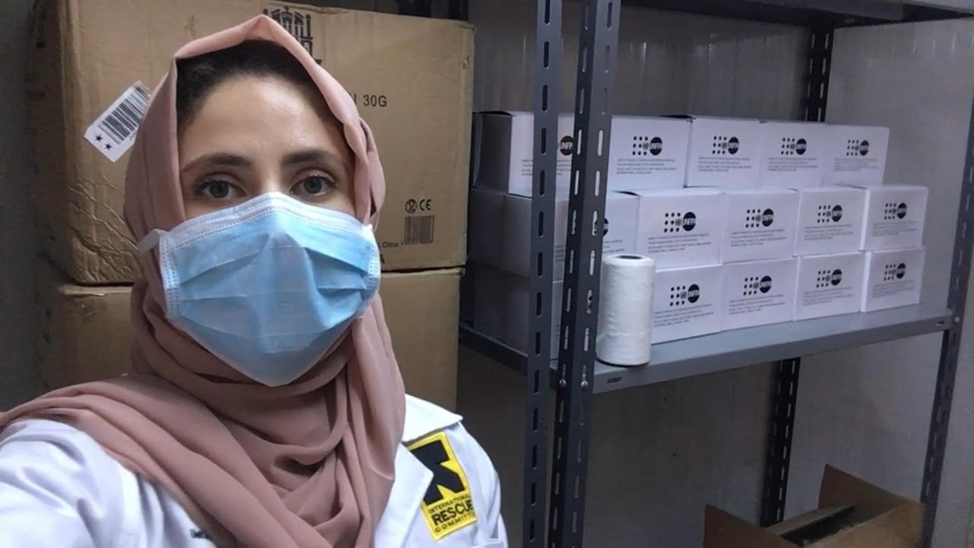 Twenty-four-year-old Doha Ibrahim Ammouri, a refugee from Syria, lives in Azraq refugee camp in Jordan with her husband and children. She volunteers as a receptionist in the International Rescue Committee’s reproductive health clinic in the camp. Despite a national coronavirus lockdown in Jordan, Doha and her colleagues continue to provide essential medical care—safely. “I’m happy that I can provide people with services that I once needed myself,” she says.